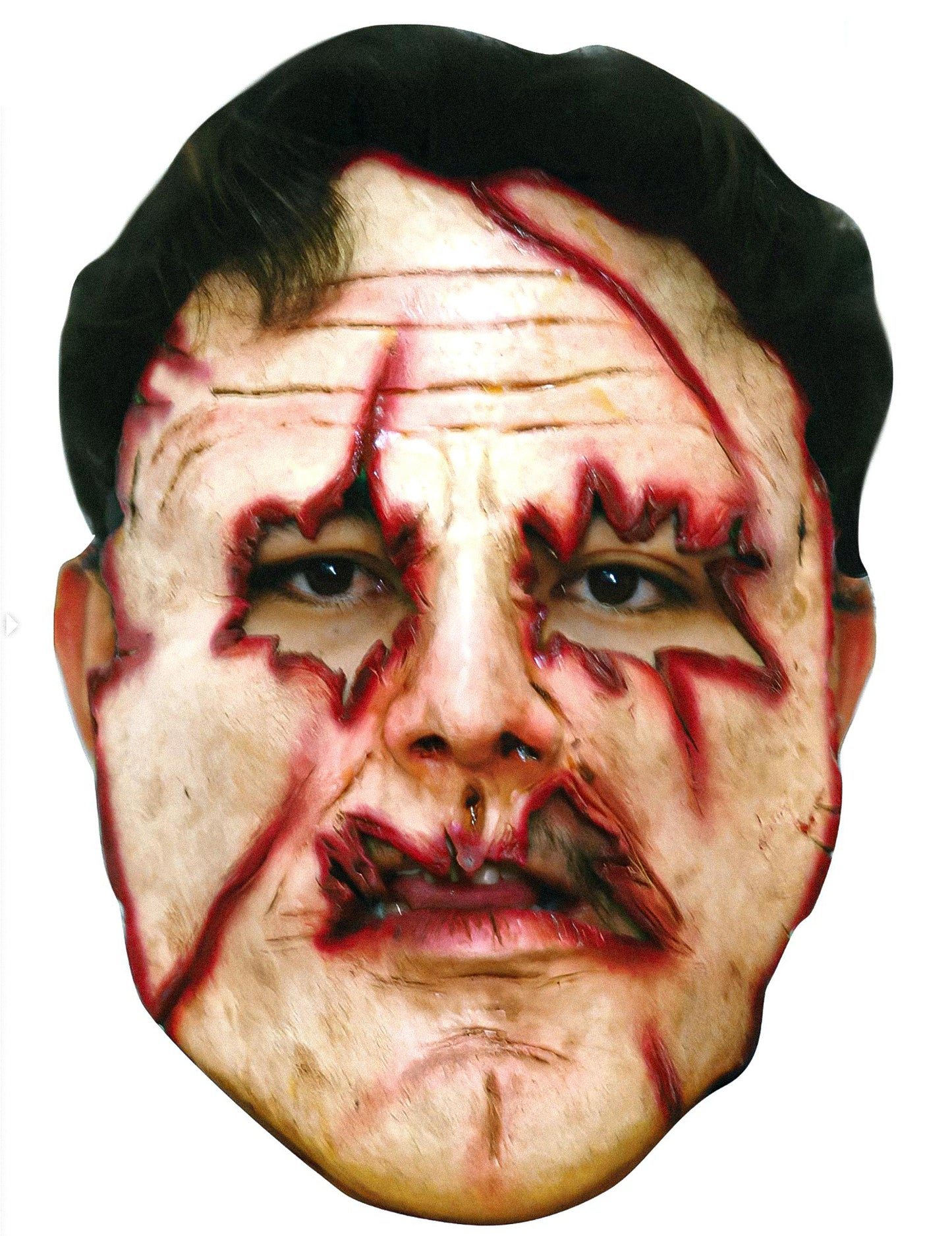 Táto maska pre dospelých vrahov je vo flexibilnom latexe. Predstavuje tvár rezanú v ústach a očiach. Elastickú údržbu udržiava. Bude vás pokryť hlavou a bude ideálny na dokončenie vášho prestrojenia na Halloween alebo iný tematický večer.