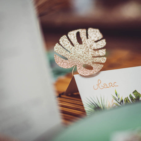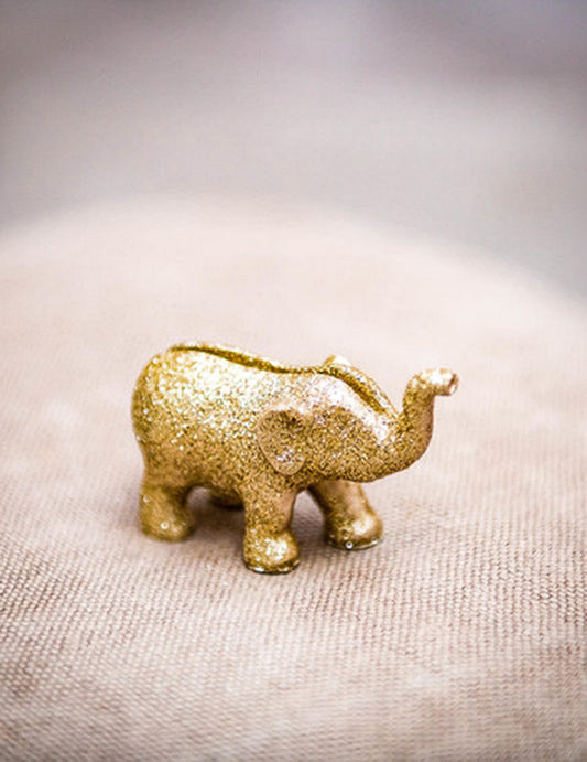 Vypredané4 kartičky s umiestnením slona zo zlatej trblietavej živice, 7 x 4 cm párty