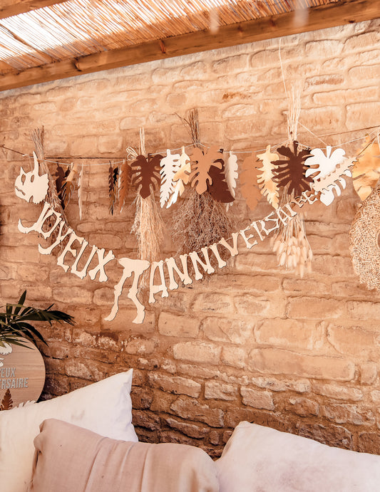VypredanéGirlanda z tropických listov v čokoládovej, kraftovej, slonovinovej a zlatej farbe, 2 m, exotická dekorácia