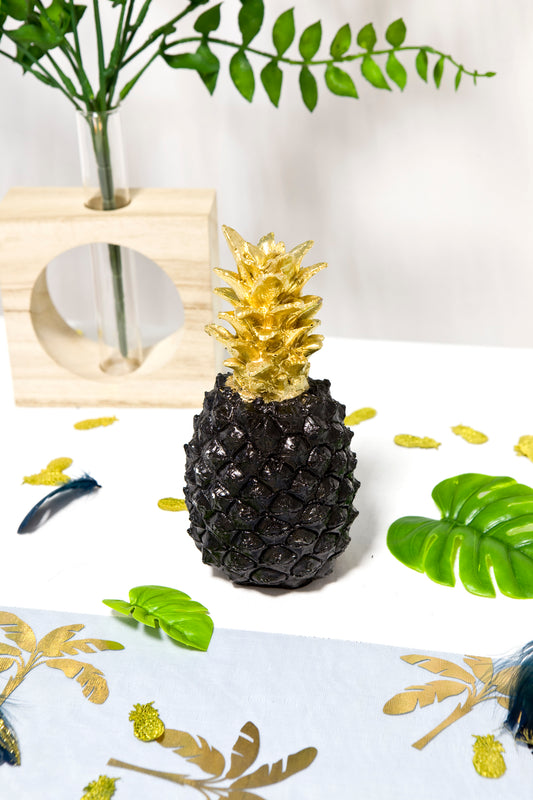 VypredanéElegantná čierno-zlatá ananásová živicová karta s miestom 5,5 cm na tropickú párty