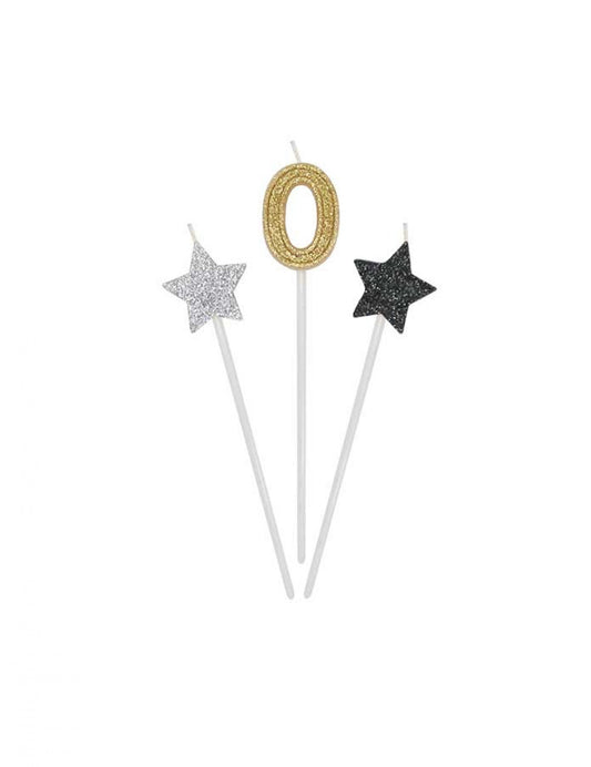 Zľava3 narodeninové sviečky zlaté, strieborné a čierne 16 cm