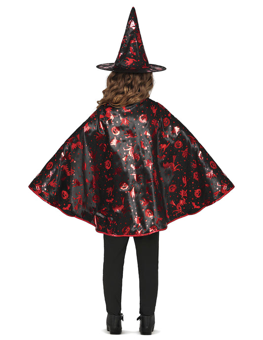 Detská čierna a červená čarodejnícka čarodejnica a súprava klobúkov