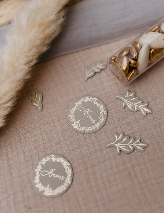 Vypredané100 akvarelových a pozlátených konfiet s motívom lásky, veľkosti 2 až 4,5 cm romantická svadba