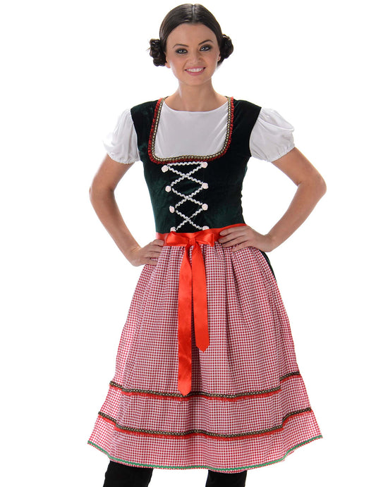 Dámsky čierny bavorský kostým s červenou výšivkou