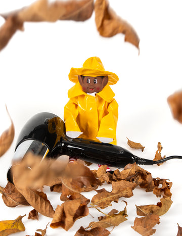 Žltý pršiplášťový kostým s klobúkom pre šibalskú elfskú bábiku