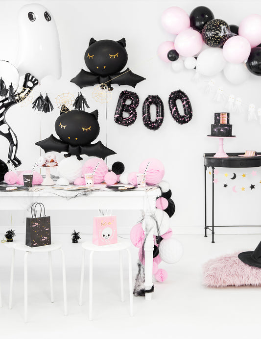 Objavte široký výber balónov rôzne vzory : tekvice, duchovia, kostrya oveľa viac. Naše balóny sú dostupné v latexovom alebo hliníkovom prevedení a prispôsobia sa všetkým vašim dekoračným potrebám. Chcete ešte pôsobivejší efekt? Rozhodnite sa pre naše obrie balóny alebo naše modely svetlý osvetliť váš priestor a upútať vašich hostí.