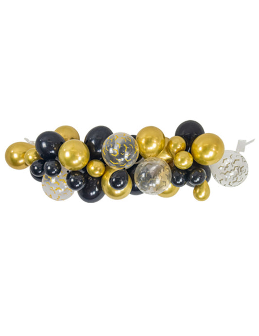 Kit archa 34 čiernych, zlatých a priehľadných halloweenských guličiek s netopierom