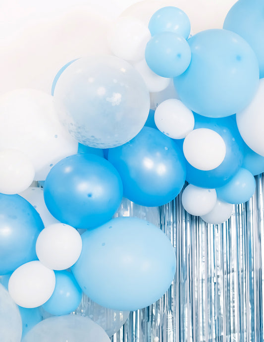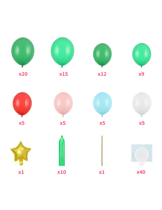 Vložené: 30 malých balónov, 30 balónov, 4 Balóny konfetov, 4 mramorované balóny, 2 veľké balóny, 1 lepiaca páska