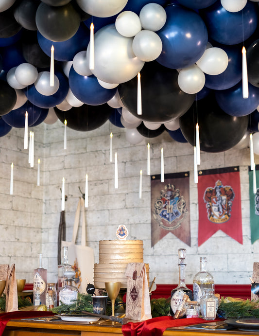 Nafúknite balóny héliom a nechajte ich vznášať sa k stropu pre magickú atmosféru. Pripojte stuhy pre ešte veľkolepejší efekt. -