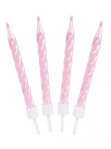 Vypredané12 perleťových ružových narodeninových sviečok v tvare špirály 6 cm