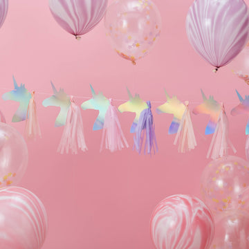 VypredanéPapierová girlanda s strapcami a jednorožcom v dúhových farbách 1,5 m
