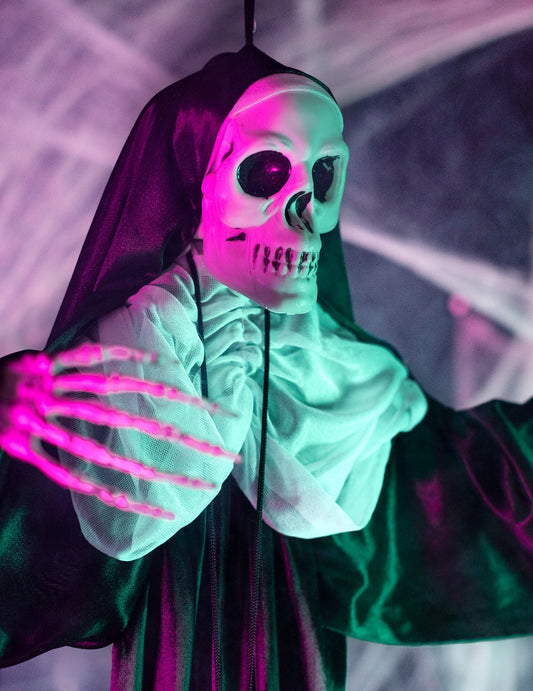 - Svetelné efekty : Blikajúce LED sviečky, UV svetlá a reflektory pre strašidelnú tieňohru.