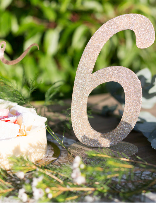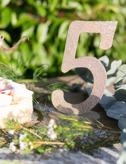 VypredanéCentrálny prvok číslo 5, trblietavé drevo, farba šampanského 20 cm so základňou