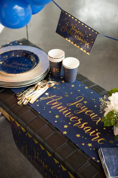 VypredanéBavlnený obrus na stôl v námorníckej modrej a zlatej farbe pre všetko najlepšie k narodeninám (28) cm x 3 m
