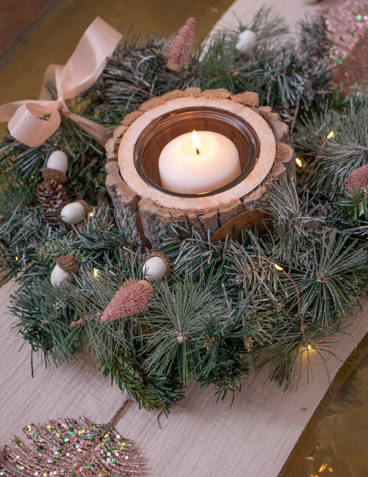 Drevený dekoráciu strom a recidíva ružový smaltovaný vzhľad 10 x 11 cm