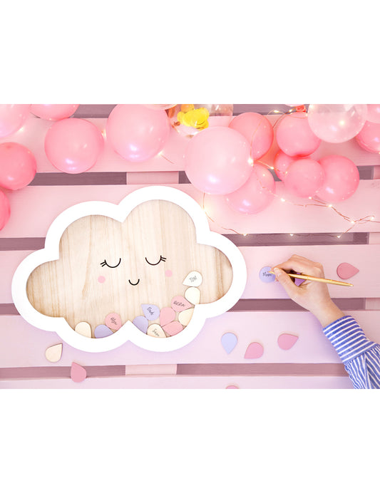 Drevená kniha hostí v tvare oblaku, 43 x 30 cm s 30 kvapkami