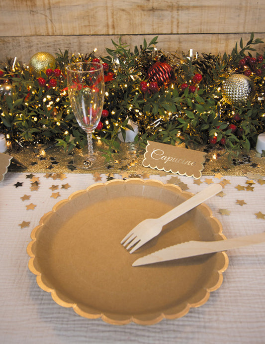 8 tanierov z kraftového a zlatého kartónu s vrúbkovaným vzorom, 23 cm