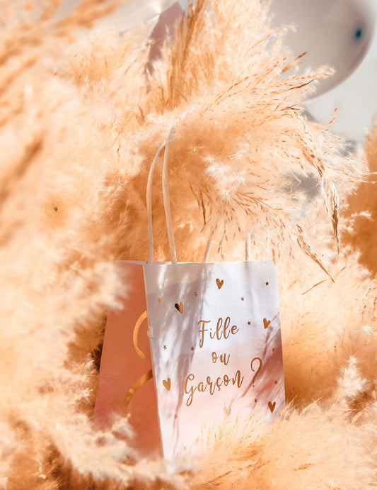 Vypredané6 darčekových tašiek pre dievčatá alebo chlapcov, ružová, modrá a zlatá, 10 x 11 x 7 cm na odhalenie pohlavia