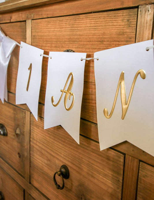 VypredanéBavlnený obrus na stôl, moje prvé narodeniny, biely a zlatý, 28 cm x 5 m