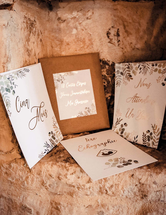 Vypredané18 pozlátených kartičiek s tehotenskými míľnikmi, 35 x 49 cm cm suveníry na oslavu narodenia dieťaťa