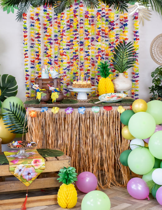 Objavte havajský vesmír pre svoje havajské tematické večery. Najväčší výber havajských dekorácií a zábavy za šialené ceny! Váš večer bude horúci! To je najmenej, čo môžeme povedať, pretože s našimi palmovými ozdobami, našimi havajskými kokosmi a našimi tiki trópnymi piñatami bude vaša párty určite skutočným pocitom. Môžete si dokonca kúpiť malé darčeky, ako sú viacfarebné prívesky na kľúče, aby vaši hostia odišli so suvenírom z vašej havajskej párty. Kvety ibišteka budú na vašej akcii, nezabudnite na roztomilé flamencové konfety a aperitívy v tvare dlane! Doplňte to všetko balónikmi všetkých farieb. Pre vaše stoly budú rafiové sukne s rôznofarebnými kvetmi dokonalou dekoráciou!Havajská večerná zábava