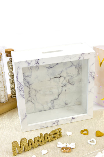 VypredanéDrevená schránka na správy s bielym mramorovým efektom, 18 x 7 cm na svadbu