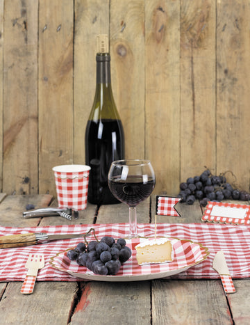 Vypredané8 drevených nožov v ginghamovej a zlatej farbe, 16,5 cm štýl guinguette