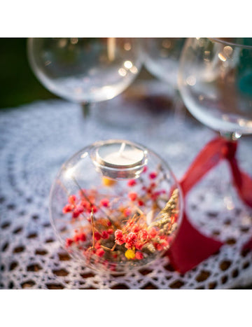 VypredanéPriehľadný svietnik s farebnými sušenými kvetmi, 11 x 10,5 cm cm svadba na vidieku