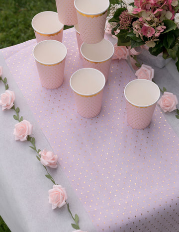 Vypredané8 vlnčekových kartónových pohárov v pastelovej ružovej a zlatej farbe, 200 ml