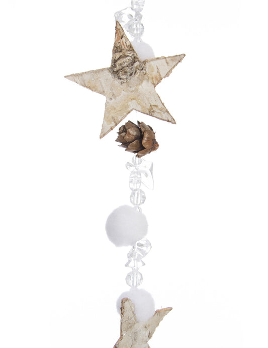 VypredanéDrevená girlanda s hviezdičkami a vatovými guľôčkami 140 cm s borovicovými šiškami