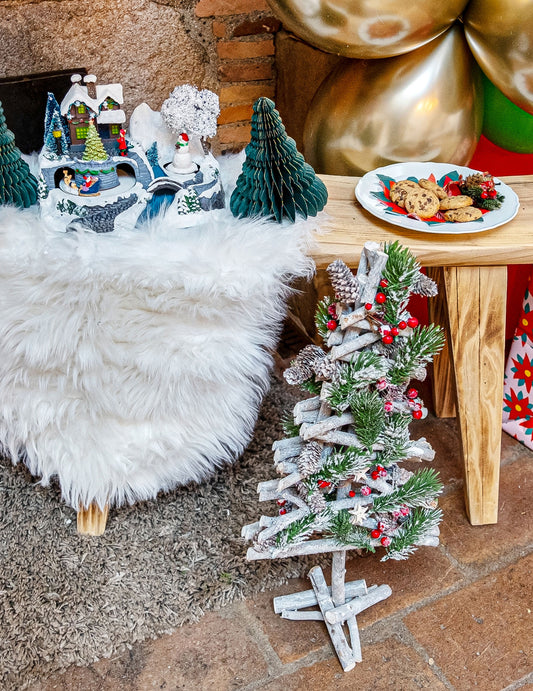 VypredanéDrevený vianočný stromček s bobuľami a šiškami 57 cm