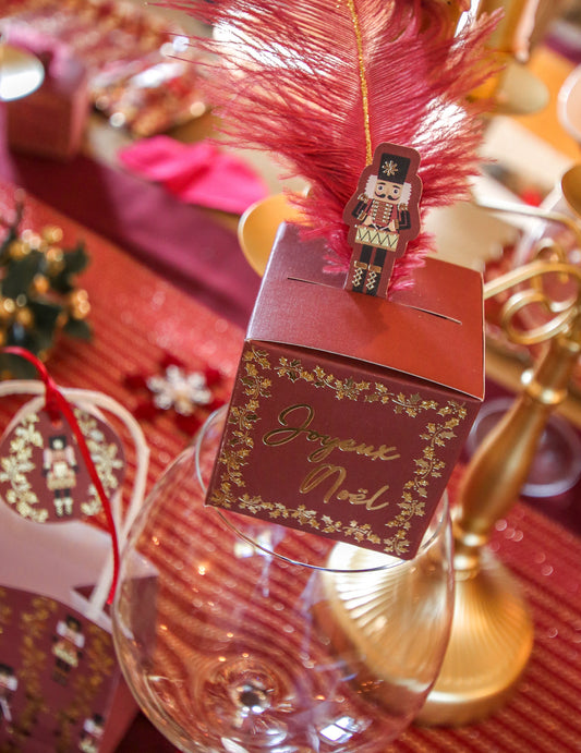 Vypredané8 slávnostných kartičiek s Luskáčikom v bordovej a zlatej farbe, 8 x 4 cm