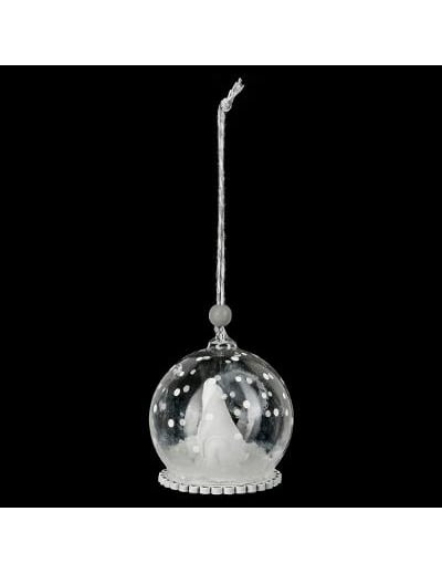 VypredanéSklenená vianočná guľa s ľadovým medveďom 6 cm a sneh