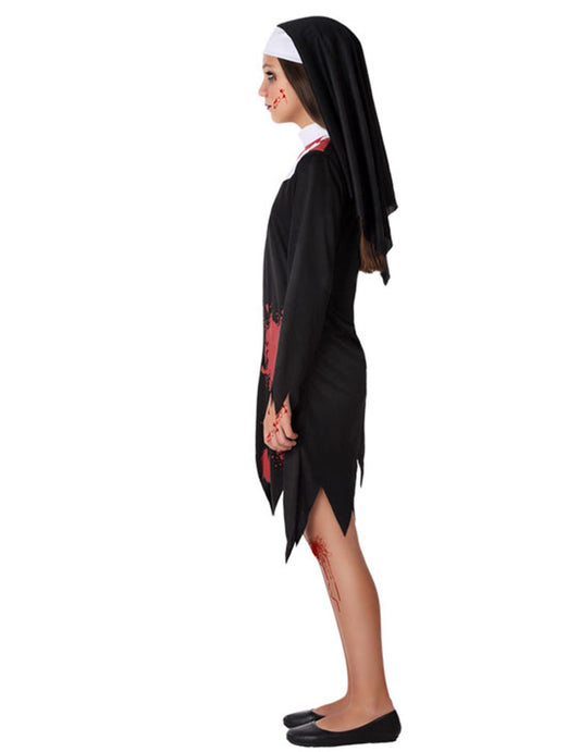 Veľký kostým s veľkosťou gotickej veľkosti s červenou a čiernou ženskou kapucňou