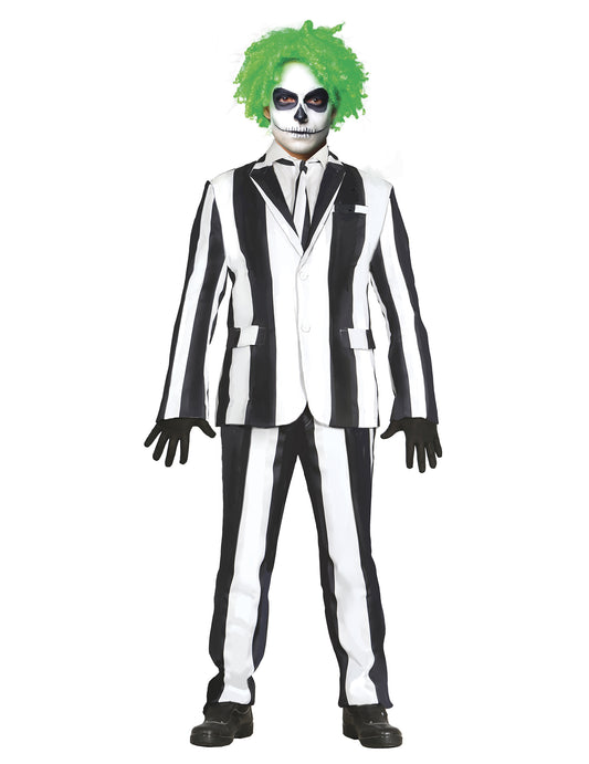 Pánsky čierno-biely pruhovaný kostým duchov veľkej veľkosti