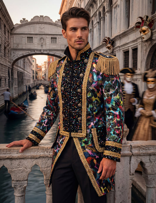 VypredanéNewLuxusná viacfarebná pánska karnevalová bunda v štýle Fiesta Carnival