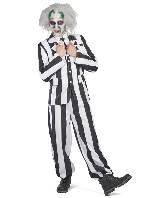 Pánsky čierno-biely pruhovaný kostým duchov veľkej veľkosti