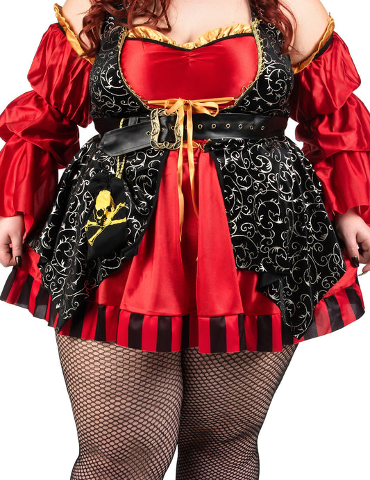 Pirátsky kostým s veľkou veľkosťou žien so zlatými vzormi