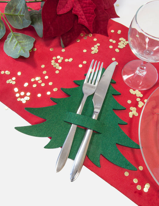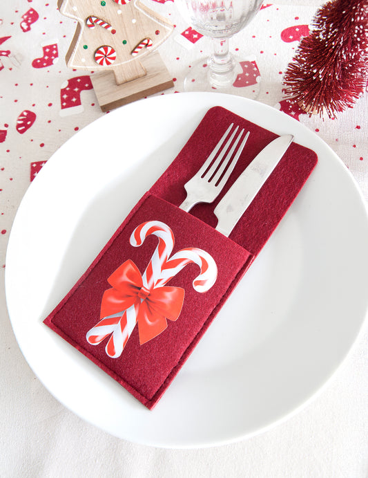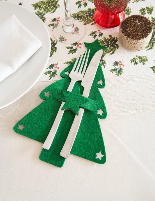 VypredanéPlstený držiak na príbory na vianočný stromček v zelenej a červenej farbe na dekoráciu stola