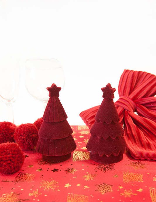 VypredanéVianočný stromček z tmavočervenej živice s efektom zamatu 11 cm, elegantná výzdoba