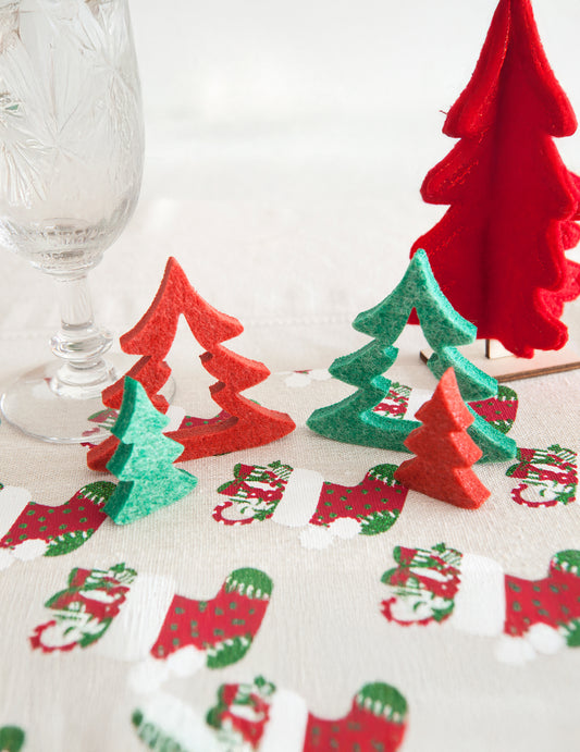 Vypredané8 zelených a červených plstených vianočných stromčekov cm na vianočné ozdoby