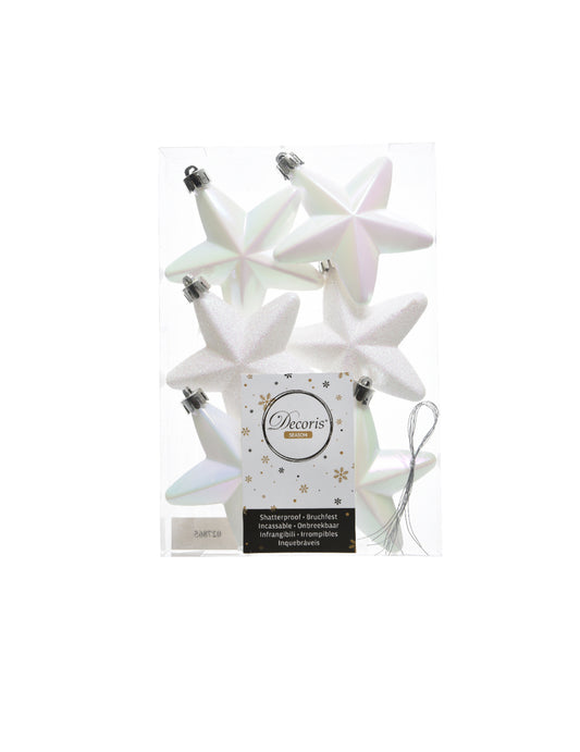 6 bielych hviezdicových ozdôb na vianočný stromček 7,5 cm trblietavé a dúhové