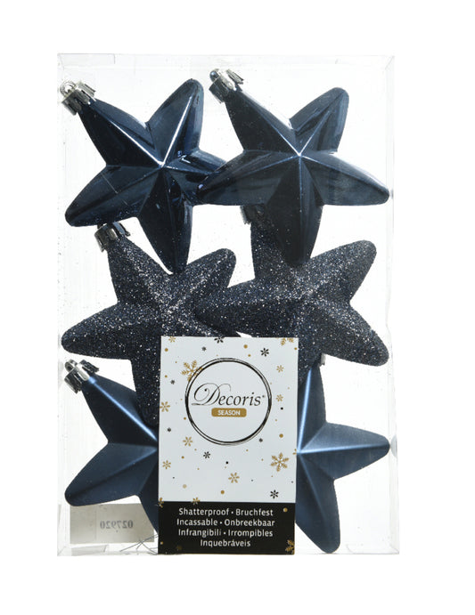 6 modrých hviezdicových ozdôb na vianočný stromček, polnočná modrá, 7,5 cm
