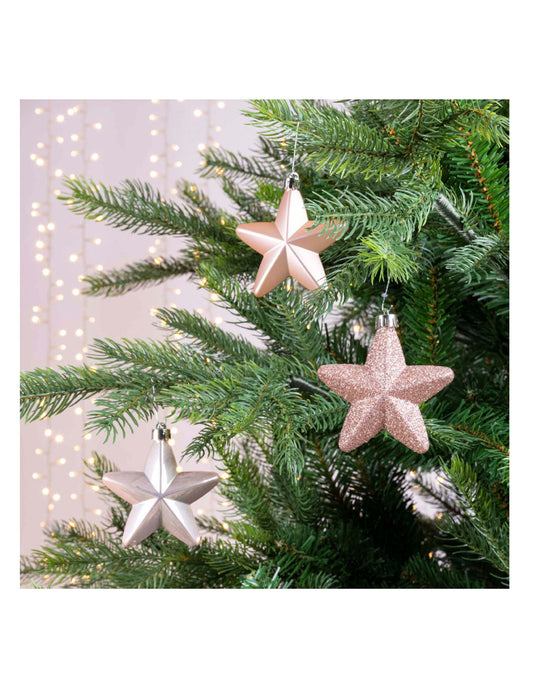 6 púdrovo ružových hviezdicových ozdôb na vianočný stromček 7,5 cm