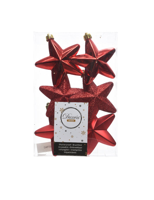 6 červených hviezdičiek na vianočný stromček 7,5 cm trblietavé a matné