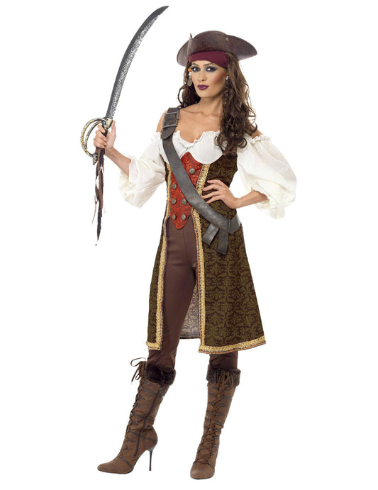Pirátsky kostým s veľkou veľkosťou žien so zlatými vzormi