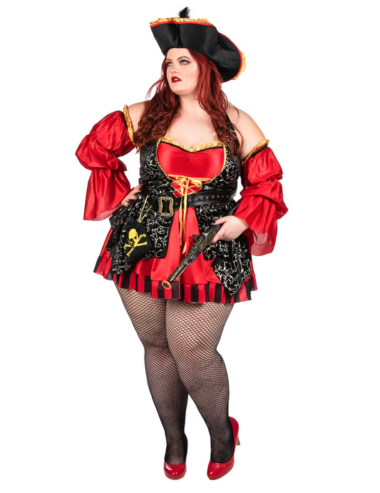 Luxusná červená luxusná červená pirátska kostým žena