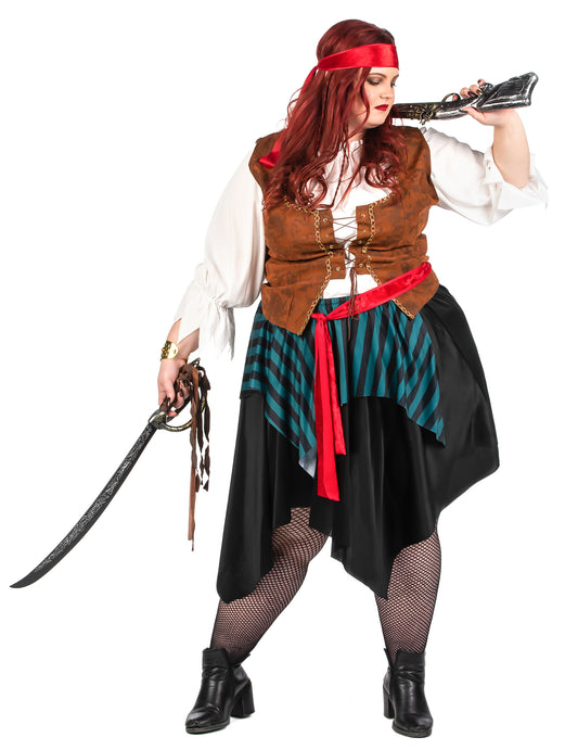 Modrá a čierna pruhovaná pirát maskujte veľkú veľkosť ženy
