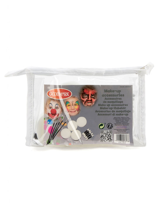 Vložené: 1 éponge, 3 fards, 1 pinceau, 1 tube de blanc, 1 crayon, 1 nez