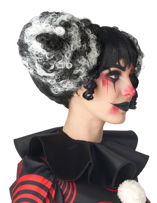 Krátka parochňa s bielymi treskami žena